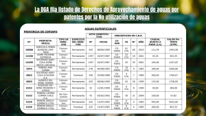 La DGA fija listado de Derechos de Aprovechamiento de Aguas por patentes por la No utilización de aguas